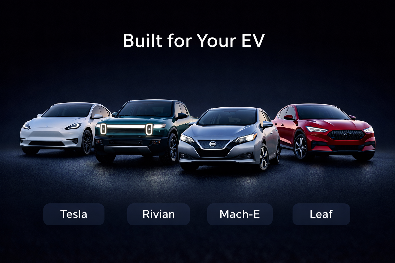 Electric Car "EV" License Plate Frame, "Powered By American Made Energy", Black